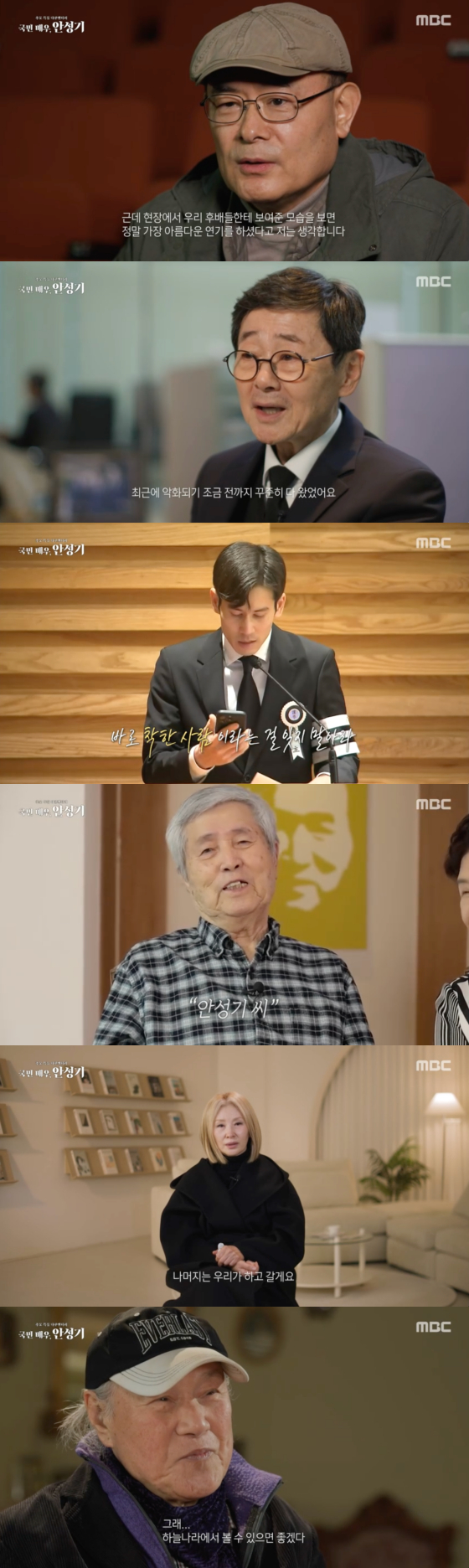 11일 오후 방송된 MBC 추모 특집 다큐멘터리 '국민배우, 안성기'에는 한국 영화의 역사이자 시대의 얼굴로 살아온 안성기의 삶과 그가 남기고 간 마지막 흔적이 담겼다.