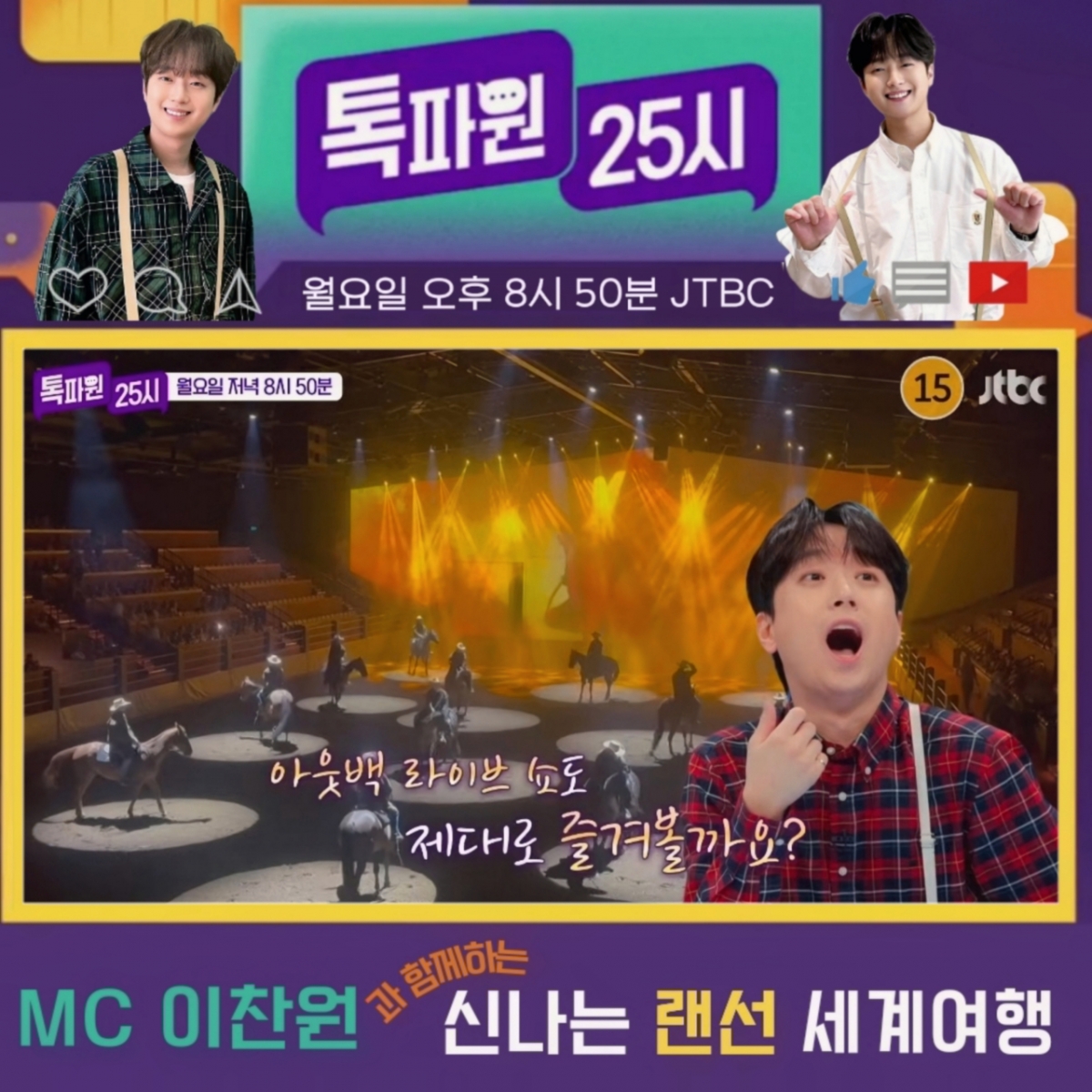 첫 번째 랜선 여행은 호주 브리즈번과 골드코스트. 귀여운 코알라와 함께하는 식사 데이트와 아웃잭 스펙타큘러에서 즐기는 스테이크 요리, 말의 라이브 공연 영상이 전해지자 이찬원은 "우하하하~"라며 크게 놀라며 호탕하게 웃어 호기심을 자극했다.