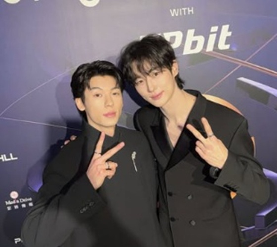공개된 사진 속 변우석과 허광한은 카메라를 향해 브이 포즈를 취하고 있다. 검은색 슈트를 차려입은 두 사람의 비주얼 합이 눈길을 끌었다.