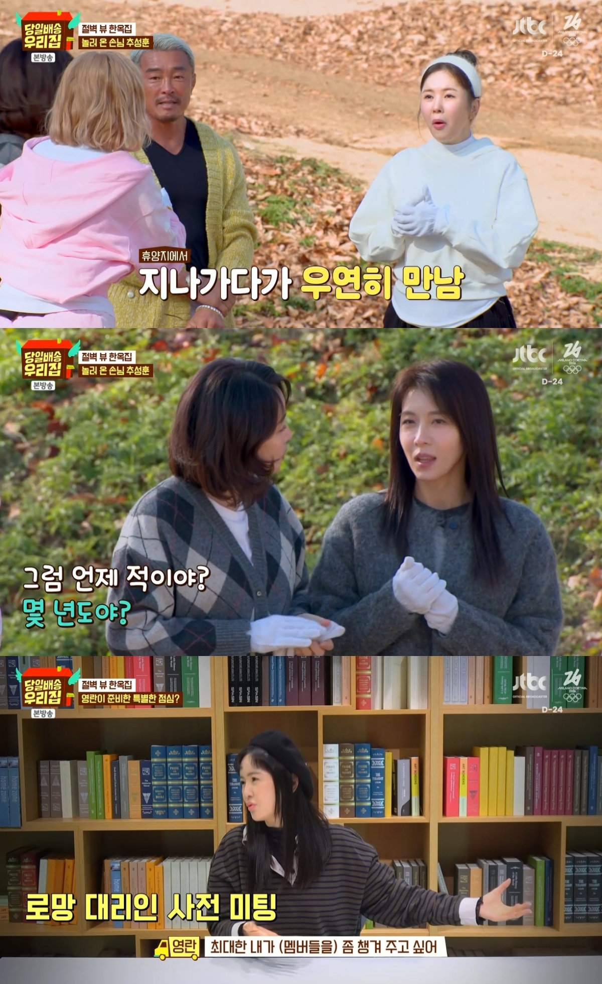 가비는 "휴양지에서 지나가다 봤다. 멋있는 분이 서 있어서 봤는데 추성훈 님이었다. 그때 인사했었다"라고 깜짝 인연을 전했다. 하지원은 "드라마 카메오로 나왔었다. 한 10년도 넘었다"라고 인연을 전했다.
