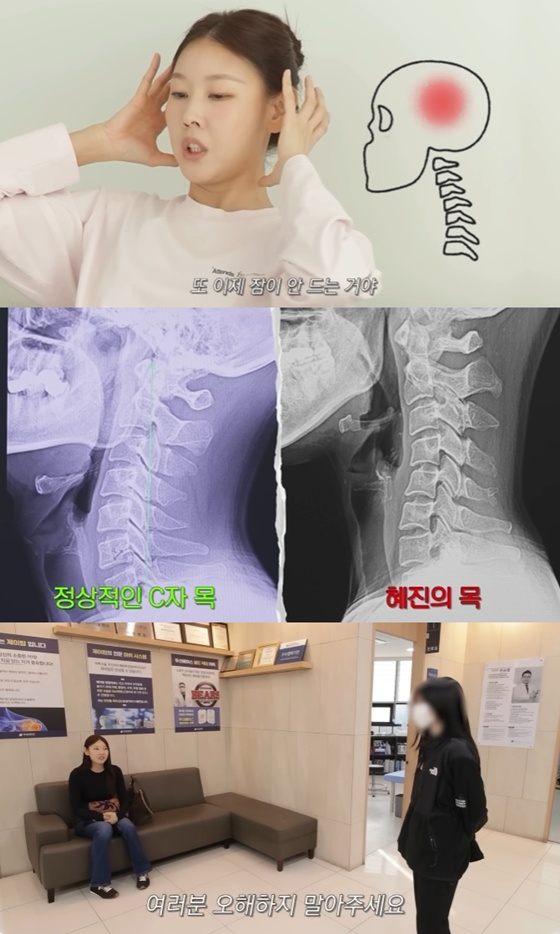 이 가운데 한혜진은 함께 일하고 있는 유튜브 PD와 자신과 비교하기 위해 28살의 젊은 PD의 목 엑스레이 사진을 찍었는데, 한혜진보다 심각했다. 이에 의사는 "환자분은 목 안 아프냐"며 걱정했다.