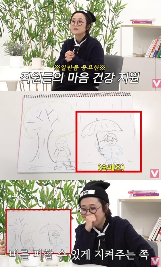 그러면서 "그림 그린 순서를 보고 나무를 먼저 그렸는데 약간 뭉클했다"며 "이 나무가 상징하는 게 회사인 것 같다. 나무는 타인을 위한 건데 이걸 먼저 생각하셨다"고 했다.