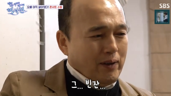 이날 김광규는 남진의 히트곡인 '빈잔' 무대가 펼쳐지자 "실연당하거나 전세 사기를 당했을 때 노래방에서 여러 번 부르고 울었던 곡이다"라며 아픈 사연을 떠올렸다.