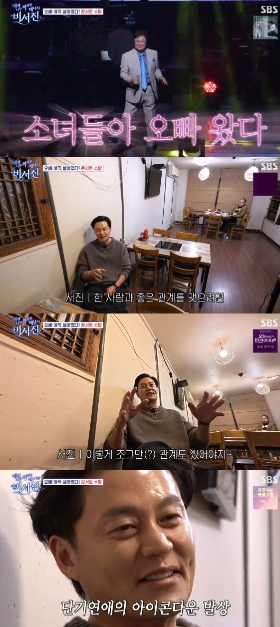 이날 이서진과 김광규는 장장 두 시간 반에 달하는 콘서트를 진행 중인 남진의 비서를 맡아 깍듯하게 대접했다.