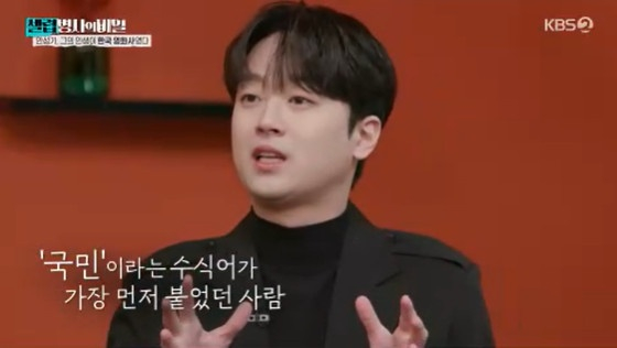 이에 이찬원은 "요즘 사실 '국민 가수', '국민 첫사랑', '국민 여동생' 등 '국민 OO' 타이틀을 많이 쓰는데 '국민 배우' 타이틀이 처음 붙은 게 바로 안성기 배우였다"라고 짚었다.