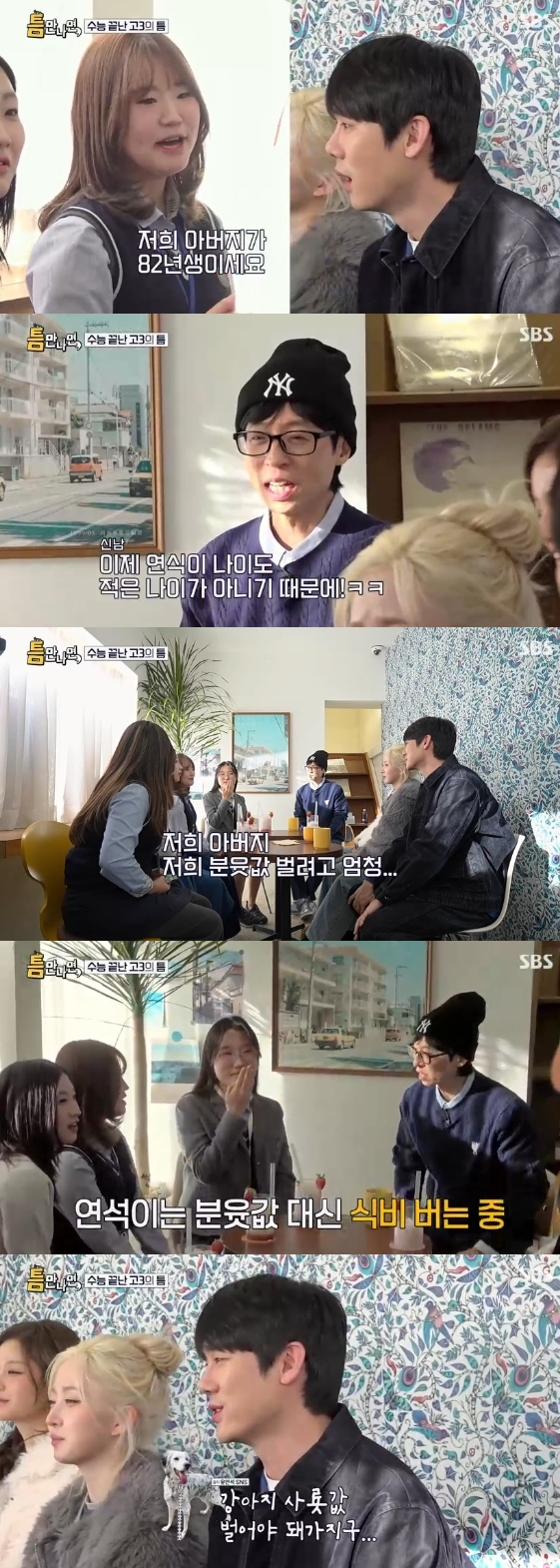 이날 유연석은 '틈 주인'으로 나온 고등학교 3학년 여학생이 "84년생이라고 들었는데 저희 아버지가 82년생이시다"라며 해맑게 웃자 당혹감을 금치 못했다.