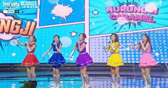 리더 홍지윤과 빈예서-소유미-구수경-강혜연이 모인 구수한 트롯 아이돌 '누룽지캬라멜'은 애니메이션 주인공 같은 복장으로 등장했다, 5인은 첫 곡 '소문 좀 내주세요'부터 흑기사인 박영규를 등판시켰고, 박영규는 걸그룹을 키우는 대표를 연기하며 미달이 아빠 대사까지 선보여 현장을 뜨겁게 달궜다. 홍지윤과 빈예서는 정통 트롯 강자들의 180도 다른 매력을 마음껏 발산하며 '오동동타령'을 귀엽고 깜찍한 매력으로 구현했고, 강혜연과 구수경은 분위기를 확 바꾸며 '서울 여자'로 아련하고 애절한 감성을 터트렸다.