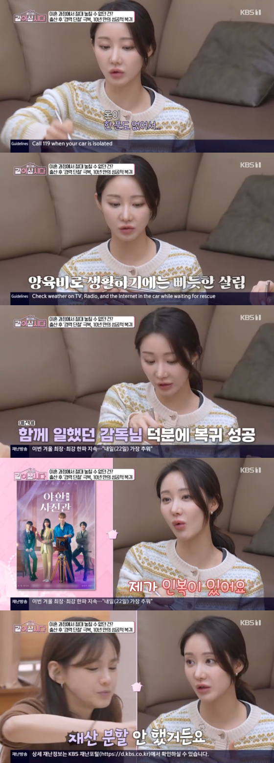 이어 "이혼하고 정말 돈이 하나도 없었다. 양육비 받은 것도 딱 빠듯하게 생활비로 나가고 정말 여유가 없었다. 제가 (이혼 과정에서) 재산 분할도 안 했기 때문"이라고 털어놨다.