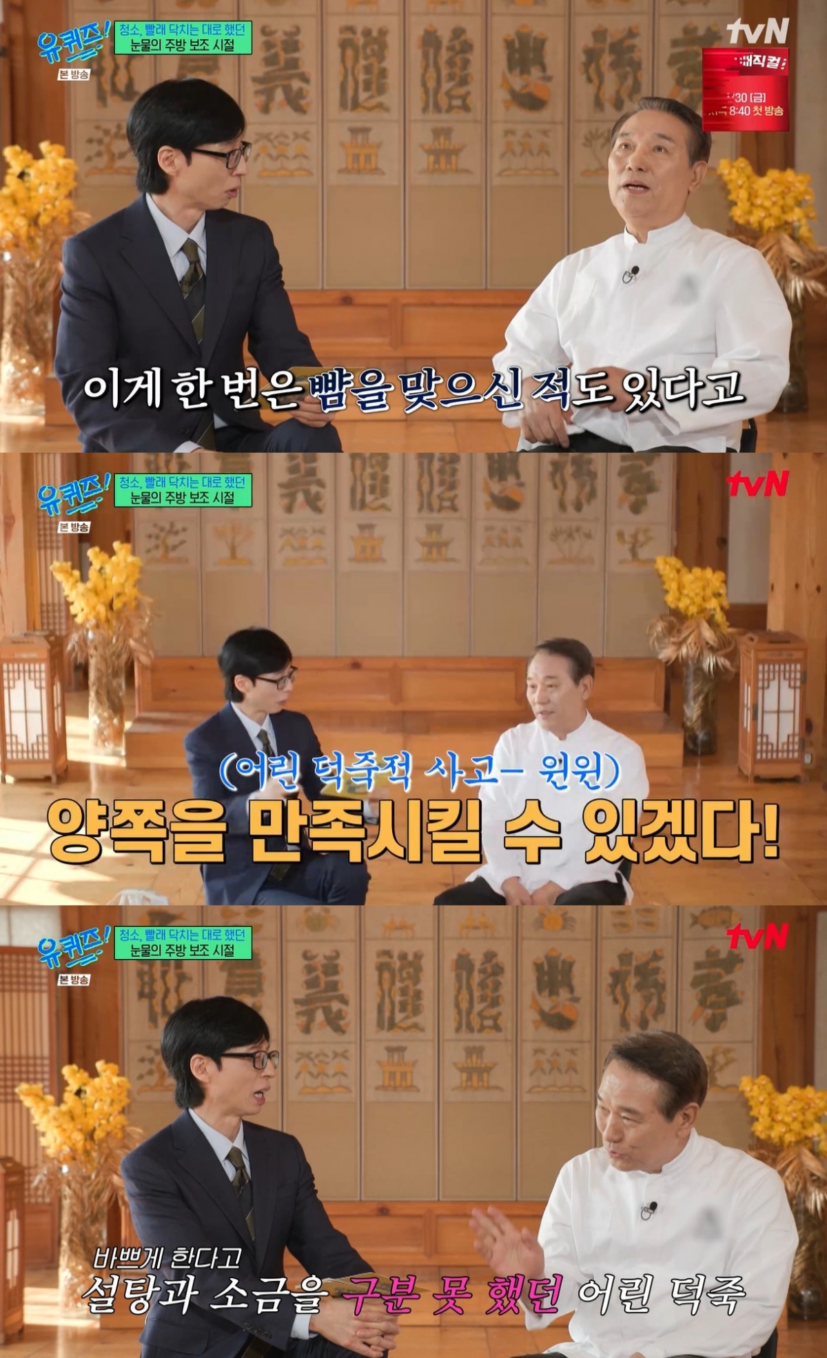 '유퀴즈' 후덕죽 셰프가 과거 요리하다가 뺨을 맞기도 했다고 밝혔다.