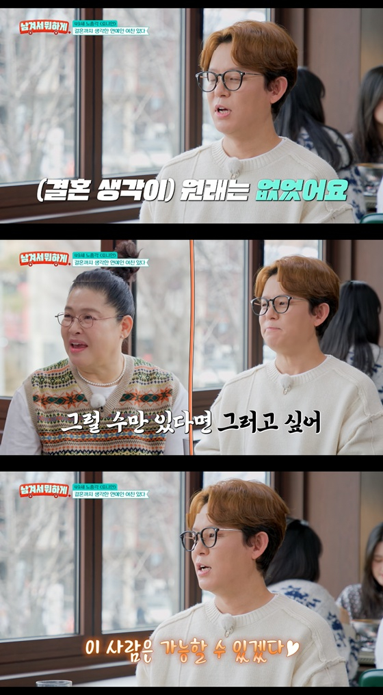 또 이상형에 대해 "많이 바뀐다. 어렸을 때는 외모를 많이 본 거 같다. 40대 넘어가니까 무조건 성격이다. 개인적으로는 술을 조금 드셨으면 좋겠다. 외모는 섹시는 아니다. 귀여운 상이 맞을 거 같다"고 전했다.