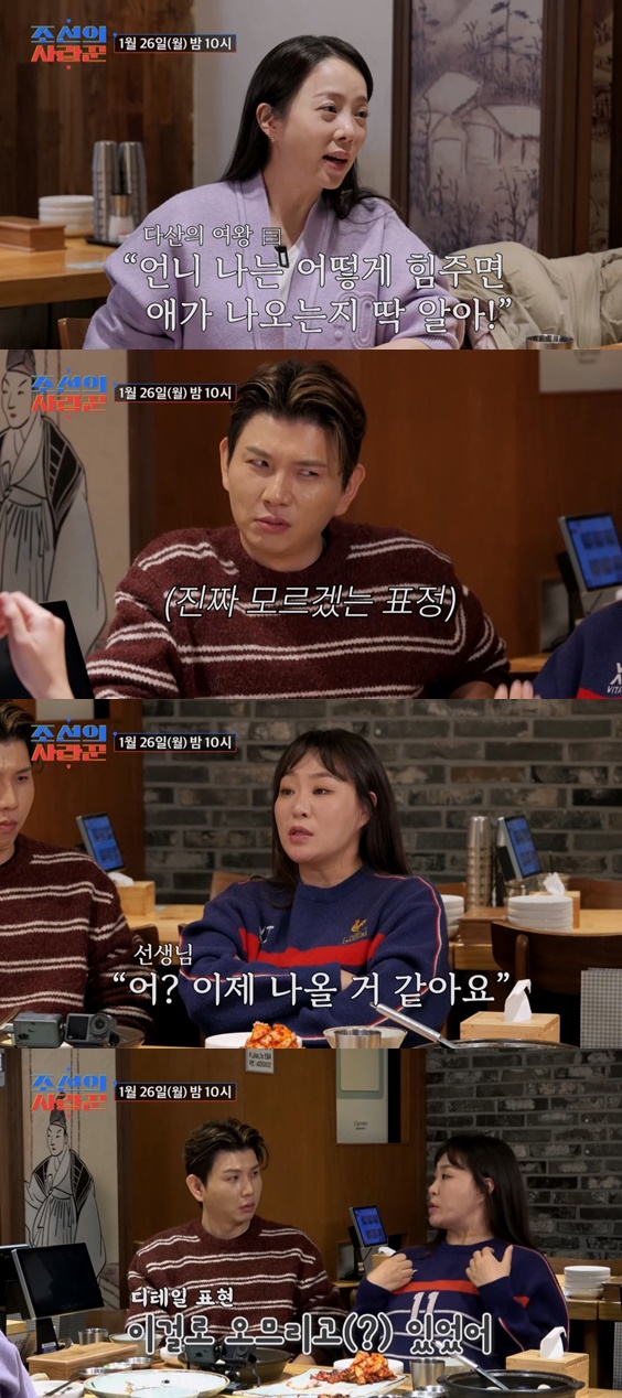 26일 방송되는 TV CHOSUN 극사실주의 다큐 예능 '조선의 사랑꾼'에서 '다산의 여왕' 정주리가 '45세 둘째 임신' 중인 방송인 박은영에게 매운맛 토크로 자연분만 노하우를 전수한다.