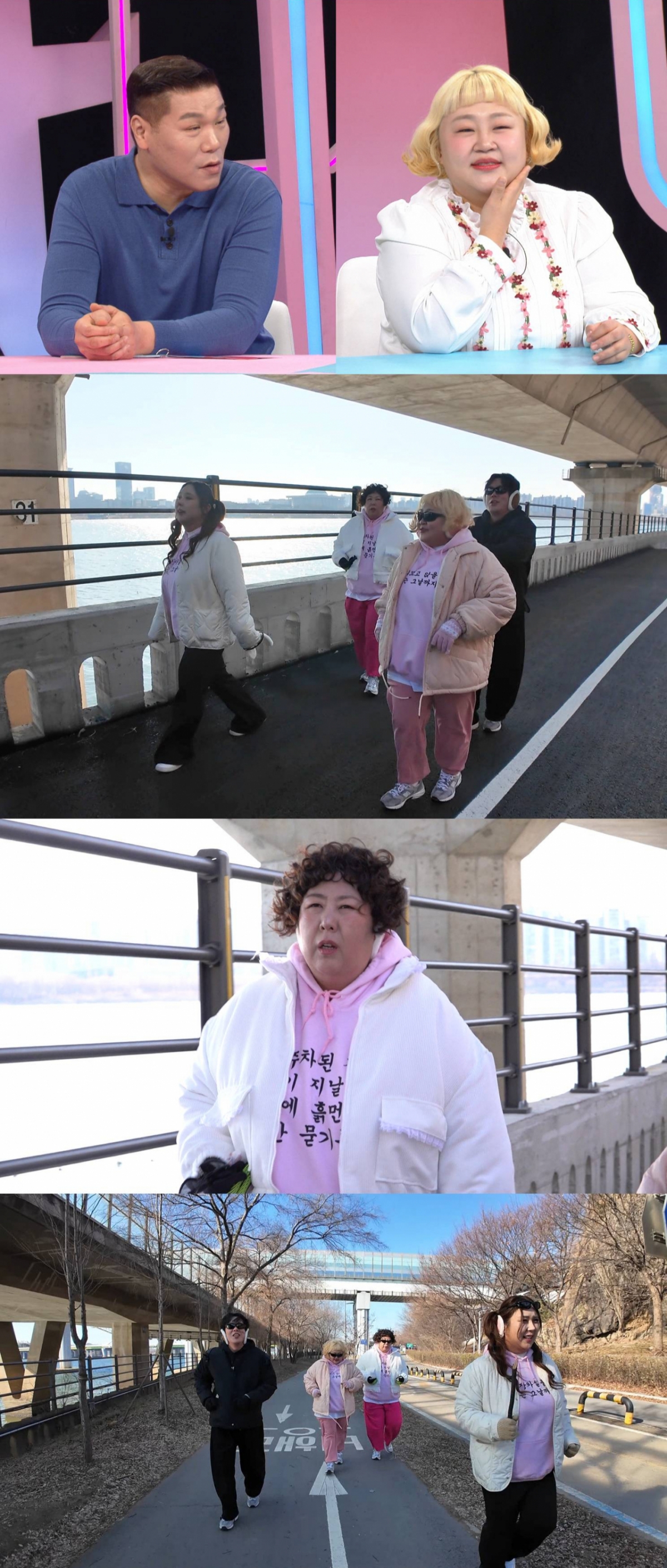 한편 40kg 감량에 성공한 홍윤화는 절친 신기루, 풍자와 함께 고도비만 타파 러닝 크루를 결성, 6km 완주를 목표로 한강 러닝에 도전했다. 체감 온도 영하 15도의 혹한 속에서 시작된 러닝은 초반부터 난관에 부딪혔다. 특히 하루에 '10보'만 걷던 신기루는 생애 첫 6km 러닝에 도전했지만, 출발과 동시에 무거운 발걸음과 가쁜 숨을 몰아쉬며 시작부터 위태로운 조짐을 보였다. 이를 지켜보던 스튜디오에서는 완주 가능성을 쉽게 예측할 수 없었다.