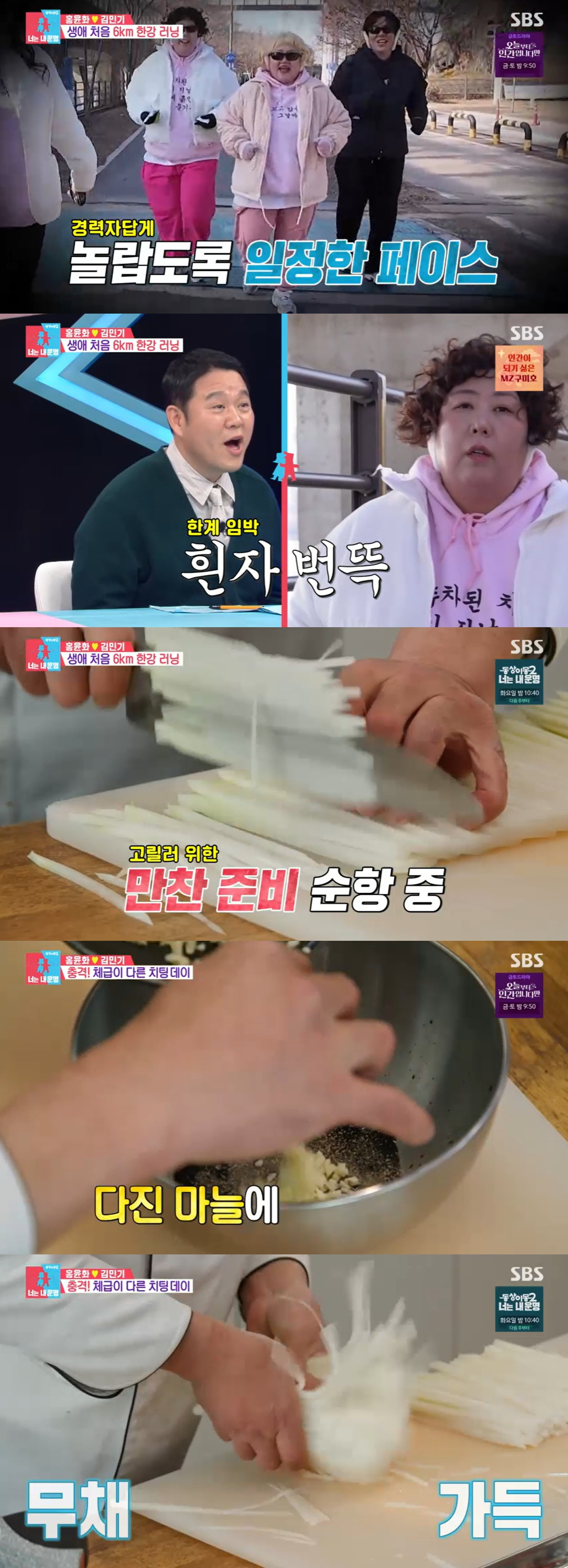 이들은 한강 달리기에 앞서 최후의 한 입으로 고기를 택했다. 이후 6km 한강 러닝에 도전했다. 신기루는 "나는 다리와 팔을 처음 같이 사용해본 거 같다"라고 당황해했다. 풍자는 두 사람과 다르게 가볍게 뛰었고, 그는 "내가 여기에 있으니 션이다"라고 했다.
