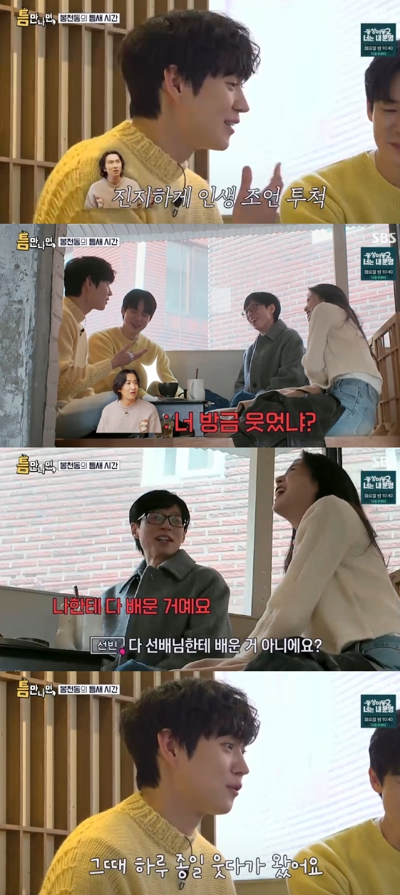 이를 듣던 이선빈은 "(이광수가) 화장실 갈 때 허락 안 받고 가냐고 하더라. 다 선배님한테 배운 거 아니냐"라고 물었고, 유재석은 "다 나한테 배운 거다"라며 흐뭇한 미소를 지었다.