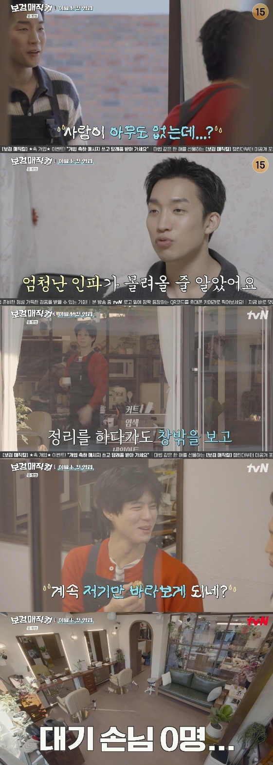 배우 박보검이 영업 첫날 썰렁한 이발소 분위기에 실망감을 감추지 못했다.