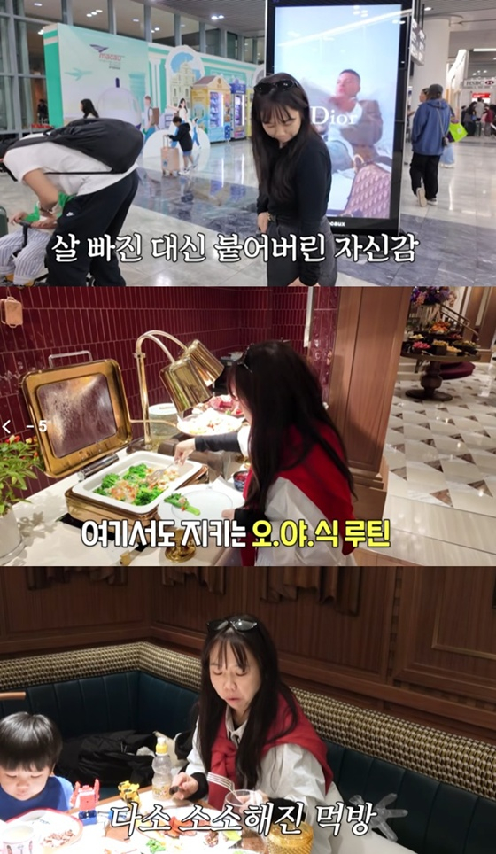 최근 홍현희는 10㎏을 감량, 49㎏을 찍었다고 밝혔다. 다이어트 비결로 '오야식'(오일·야채·식초) 습관이라고 말한 바 있다. 이날 여행에서도 식단을 지키며 "아채 먼저"라고 했다.
