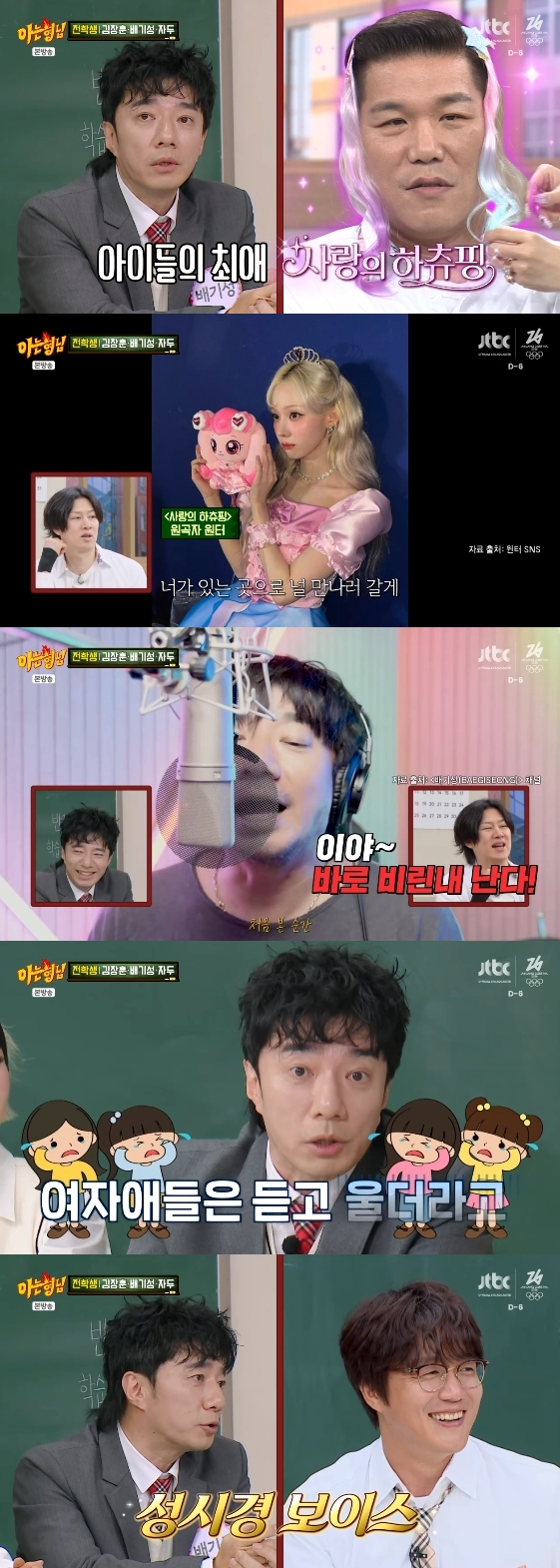 이에 김희철은 "에스파 윈터가 부른 건 겨울 냄새가 나는데 배기성이 부른 건 비린내가 난다"라고 너스레를 떨어 웃음을 안겼다. 자두 역시 "하츄핑이 인생을 너무 살았다. 너무 절절하다"라고 폭소를 터뜨렸다.