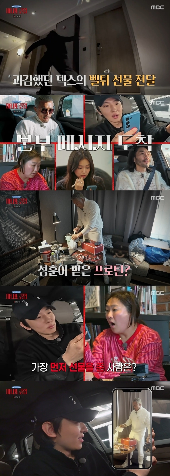 이때 첫 번째 선물이 도착했다는 본부의 메시지가 도착해 시선을 모았다. 덱스는 2분 차이로 이수지를 앞질러 첫 번째 혜택을 획득했다. 그는 추성훈이 선물을 받은 영상을 보며 "받은 모습을 보니까 뿌듯하다"라고 미소 지었다.