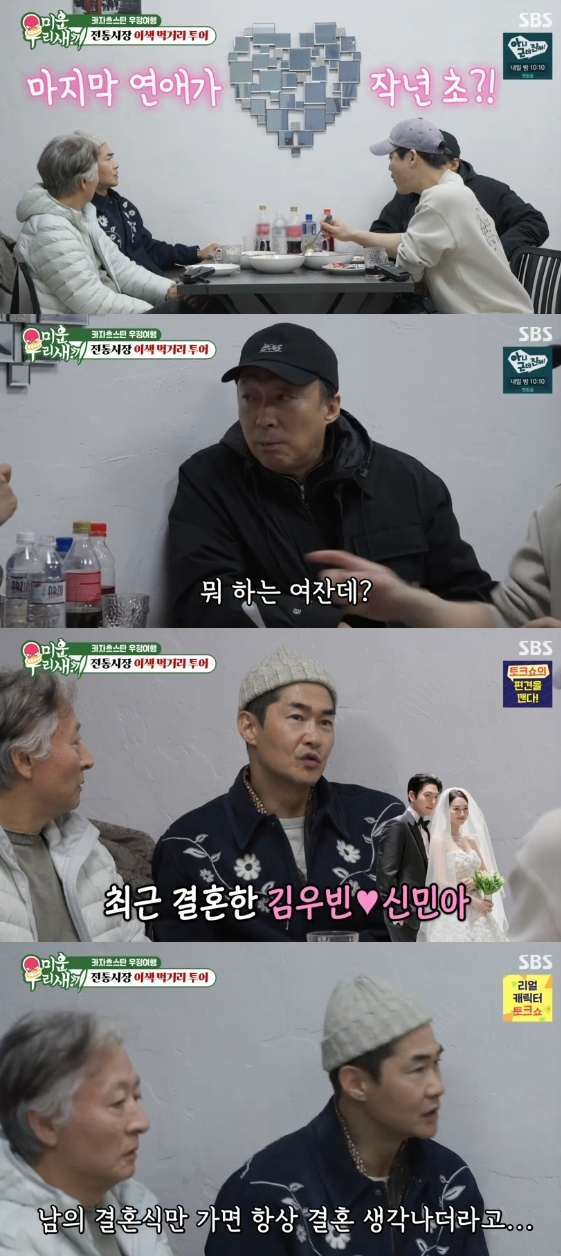 이에 배정남은 김우빈, 신민아 커플을 언급하며 "얼마 전에 우빈이 결혼식에 다녀왔는데 결혼하고 싶더라. 남의 결혼식만 가면 항상 결혼 생각이 난다"라고 묘한 심정을 고백했다.
