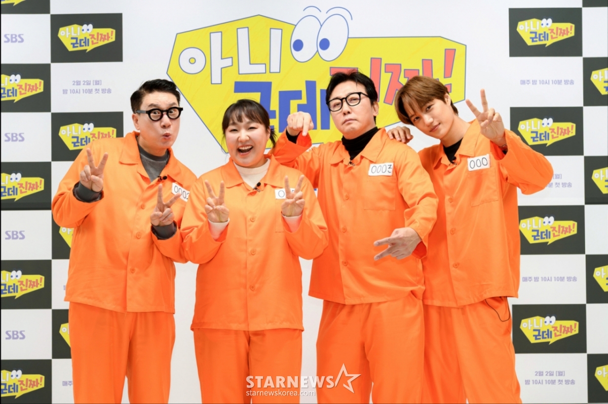 2일 오후 SBS 신규 예능 프로그램 '아니 근데 진짜!' 제작발표회가 온라인으로 진행된 가운데 방송인 탁재훈, 이상민, 코미디언 이수지, 그룹 엑소 카이가 참석했다.