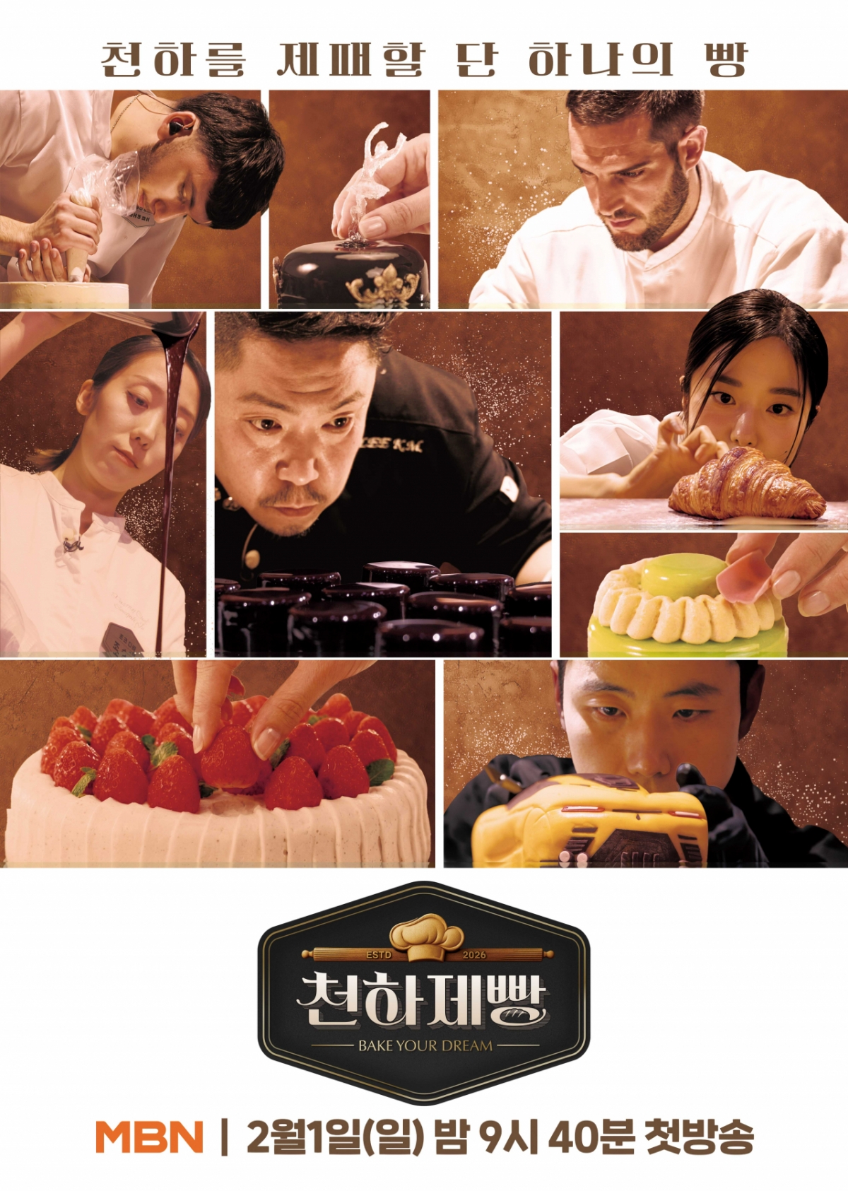 지난 2월 1일(일) 오후 9시 40분, MBN 신규 예능 '천하제빵'이 첫 방송됐다. '천하제빵'은 빵을 단순한 음식의 영역을 넘어 하나의 문화 트렌드로 확장한 'K-빵'의 경쟁력과 가능성을 조명하며, 세계 최강의 제과제빵사를 선발하는 국내 최초 K-베이커리 서바이벌 프로그램이다.