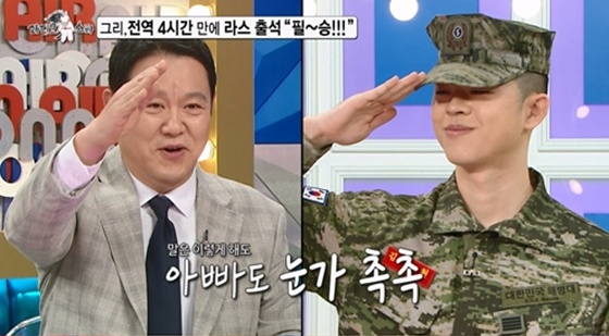 방송에 앞서 공개된 영상에서 그리는 스튜디오에 등장하자마자 우렁차게 해병대식 전역 신고를 해 시선을 사로잡는다. 특히 김구라는 아들의 전역 신고에 눈가가 촉촉해진다. 이들의 모습을 보던 조혜련이 눈물을 흘리며 오열하자, MC 김구라는 "내가 울어야지, 왜 울어?"라며 괜히 호통을 쳐 웃음을 자아낸다.