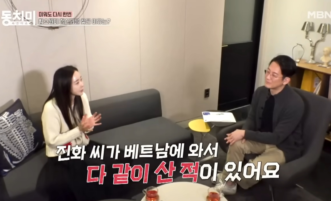 공개된 영상에서 함소원은 정신과 전문의와의 상담 중 "이혼 절차를 모두 마친 뒤인 2023년 내가 베트남에 갔을 때 진화 씨가 그곳으로 와서 다 함께 산 적이 있다"며 "친정엄마와 진화 씨, 나, 그리고 딸 혜정이까지 네 식구가 같이 지내게 된 상황이었다"고 밝혔다.
