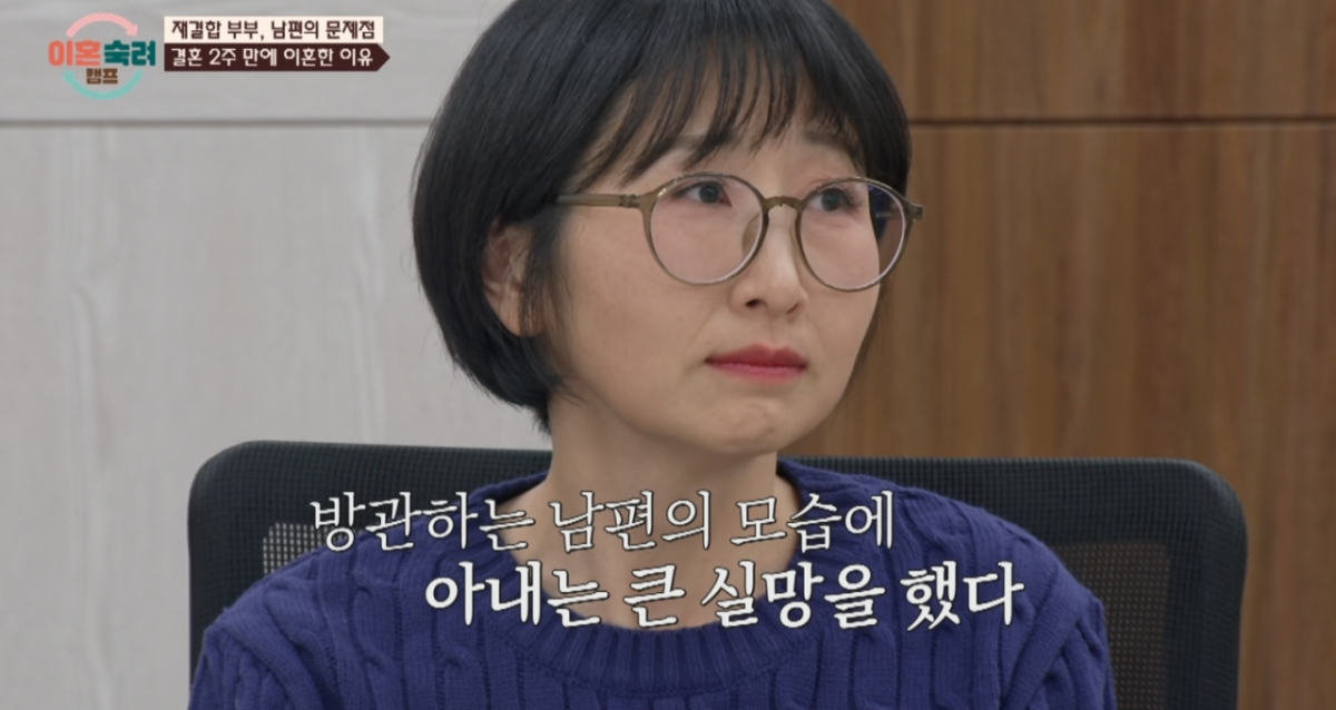 아내는 고부갈등과 남편의 여자 문제 때문에 두 번이나 인생을 망쳤다고 주장했다. 첫 번째 결혼 생활 중 아내는 고부갈등으로 인해 2주 만에 가출하며 이혼에 이르게 됐으며, 고부갈등을 방관하던 남편은 시어머니에게 한 시간 동안 혼난 아내에게 "어머니는 딸처럼 생각한 거다"고 하는 등 가부장적인 태도로 대한 것이 밝혀져 충격을 안겼다.