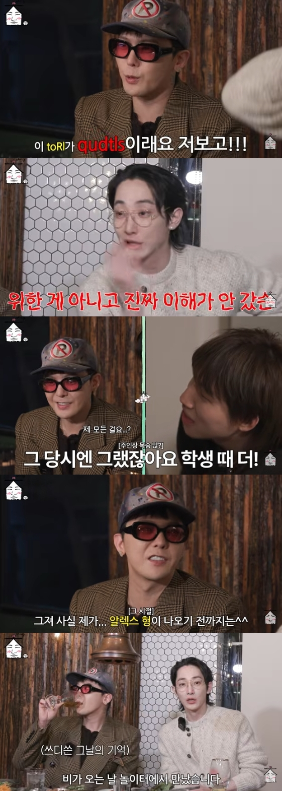 이를 듣던 이수혁은 "제가 아는 버전이 아니다. 집에 있다가 지용이한테 전화가 와서 비 오는 날 놀이터에서 만났다. 미끄럼틀 아래쪽에서 비를 피하고 있었다"라고 회상했다.