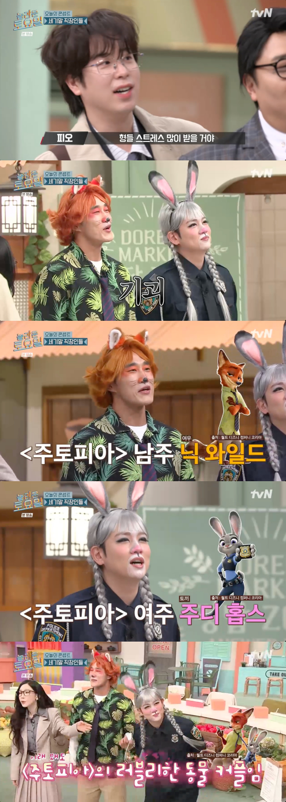 이날 김동현과 한해는 벌칙으로 애니메이션 '주토피아' 속 닉, 주디 분장을 하고 등장했다.