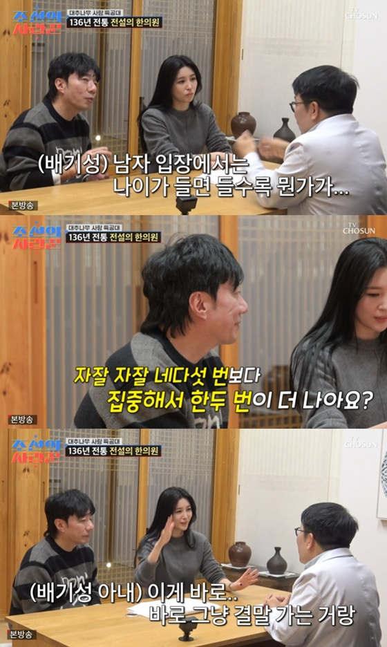 한의사는 "요즘 남자들한테 중요한 건 격려다"라고 했다. 이은비와 배기성은 "명쾌해졌다. 답답한 걸 많이 풀어주셔서 감사하다"고 전했다.