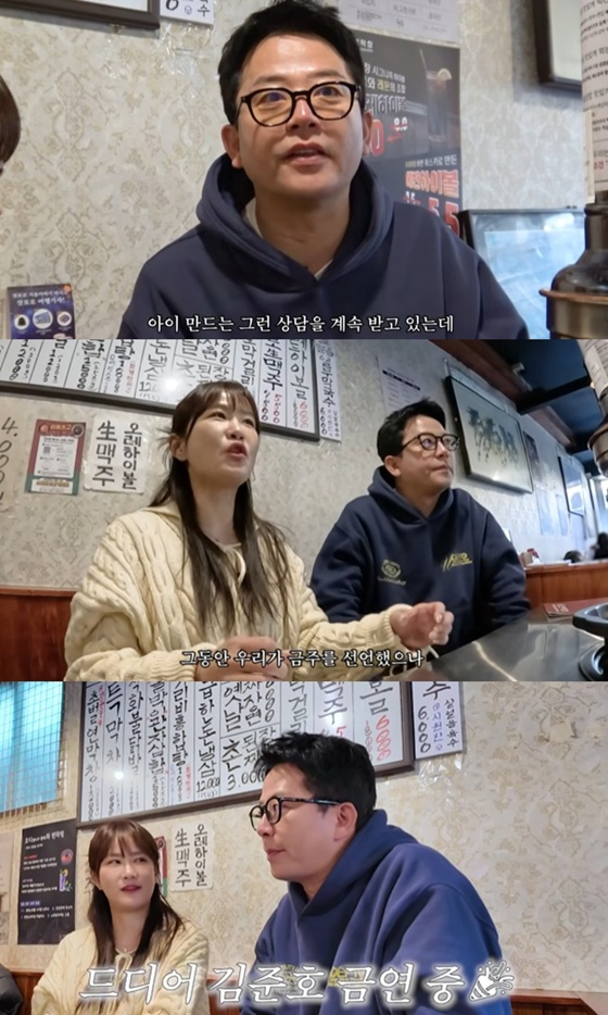 이날 김준호와 김지민은 대구의 한 식당에서 막걸리를 주문하며 "정말 소중한 술이다. 아이 만드는 상담을 계속 받고 있다"라고 언급했다.