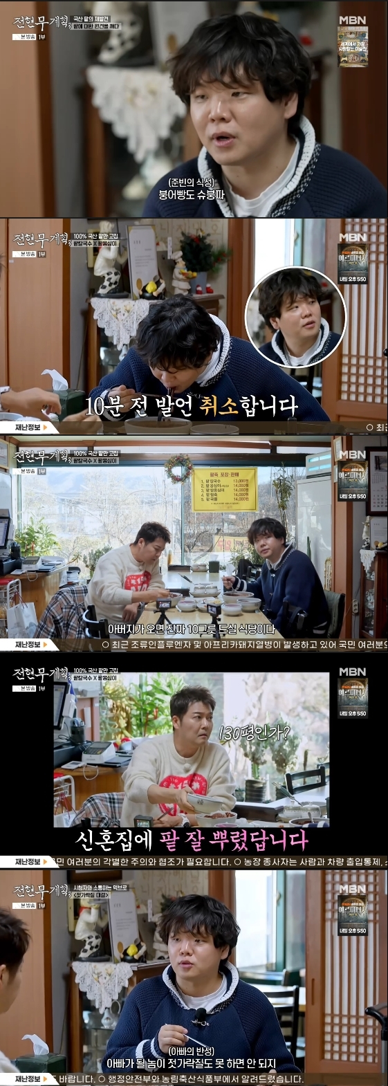 그러나 곽튜브는 팥죽과 팥칼국수를 맛본 뒤 태세가 급변했다. 그는 "팥 향이 물씬 느껴지면서 단맛이 없다. 인위적인 맛이 전혀 없다"라고 감탄하더니 "아버지가 오시면 열그릇은 드실 것 같다. 대한민국 1등으로 꼽아도 될 정도다"라고 엄지를 치켜세웠다.