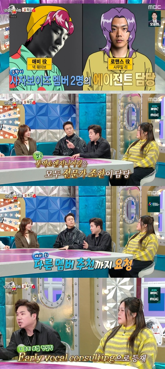 이날 김조한은 "사자보이즈 멤버 2명의 에이전트 담당"이라고 밝혔다. 이는 애비 역의 넥 웨이브와 로맨스 역의 사무일 리였다.
