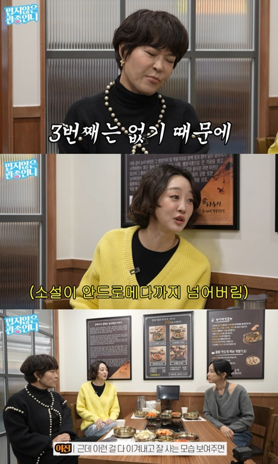이날 조혜련은 "지금 잘살고 있다. 3번째는 없다"고 말했다. 이에 이지혜는 "박미선, 이성미 씨도 그렇고 너무 잘 만나서 '남편을 업고 다녀야 한다'고 했다"고 말했다.
