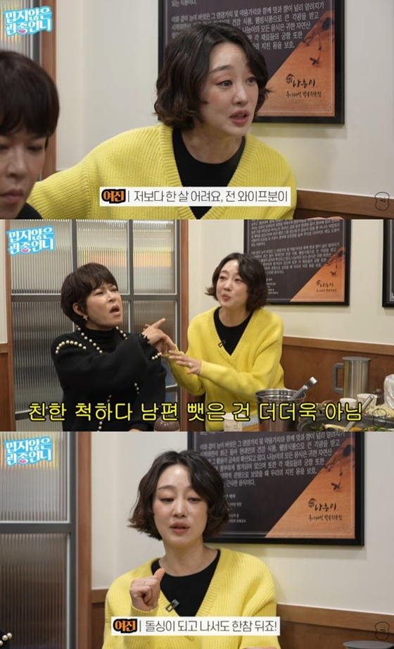 이날 조혜련은 "나는 그걸 좀 물어보고 싶다. (남편과) 같이 사셨던 분이 '그런 거 아니'라고 증언해줬는데 아직도 안 믿더라. 정리했으면 좋겠다"고 걱정했다.