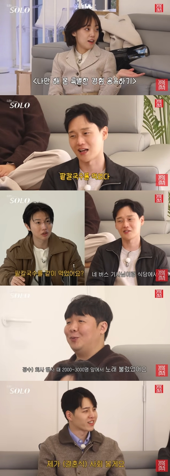 광수가 결혼식 축가를 불러봤다고 말하자 영식은 "저는 사회자 해봤다. 만약 우리 기수에 결혼하는 사람이 나오면 제가 사회를 보겠다"라고 대꾸해 출연진들의 환호를 받았다.