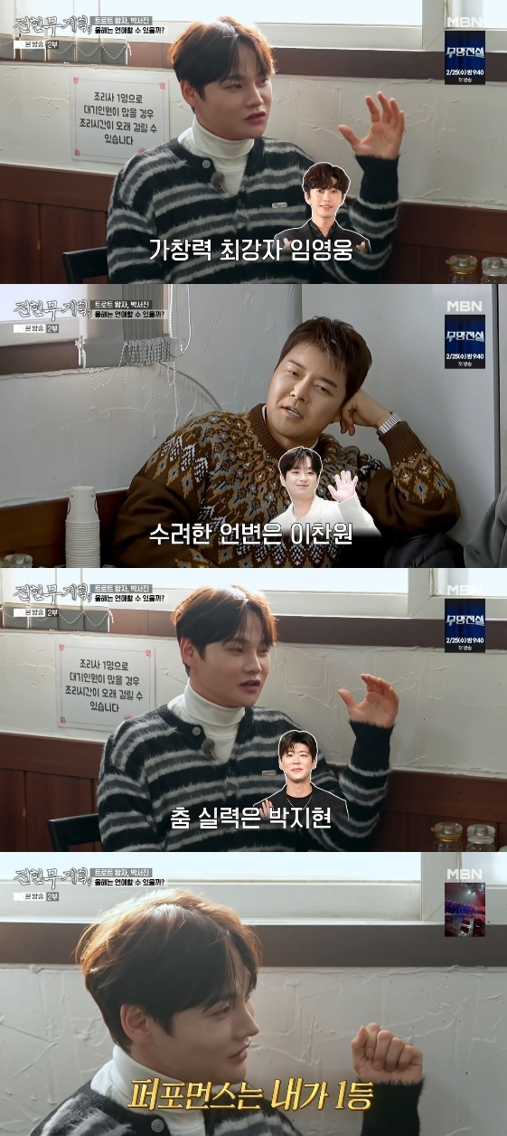 그는 라이벌 의식을 느끼는 동료에 대해 "노래는 임영웅 형이 확실히 잘하는 것 같고, 멘트로는 이찬원을 따라갈 사람이 없다. 춤추는 건 박지현을 못 따라갈 것 같다"라고 설명했다.