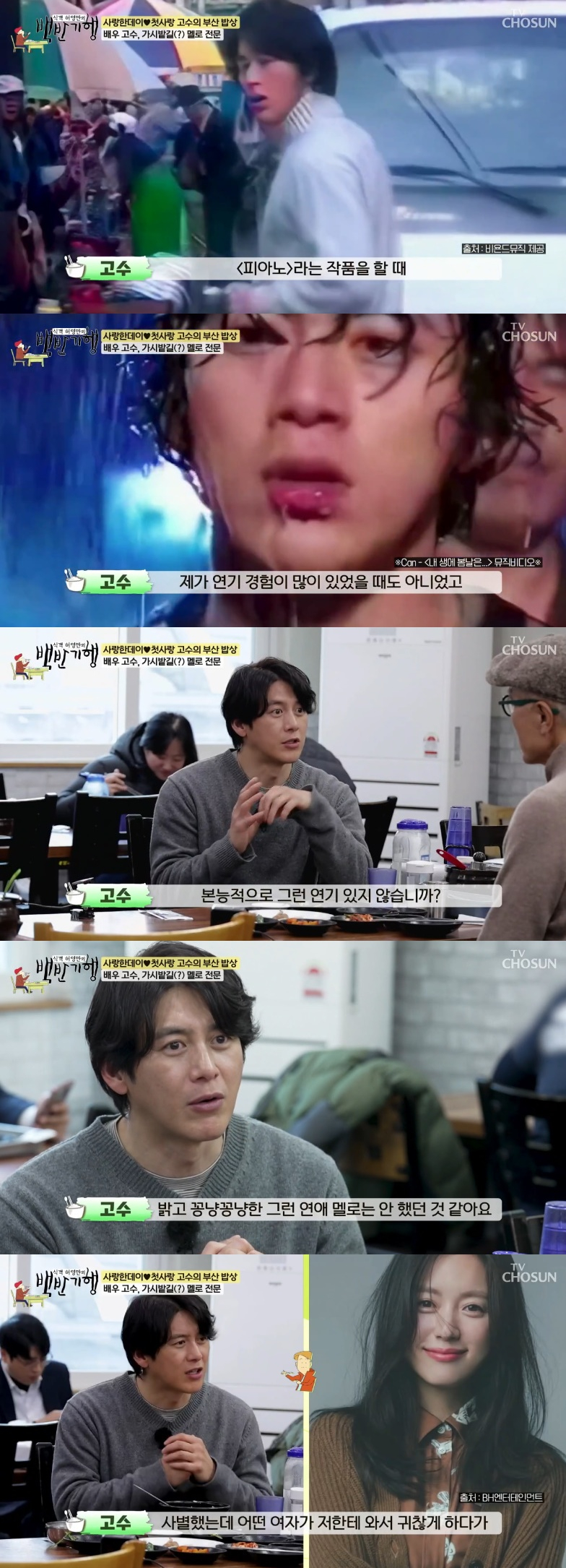 이에 고수는 "'피아노'를 할 때 이복누나를 좋아하는 역할을 했다. 밝고 꽁냥꽁냥한 멜로 연기를 별로 안 했다. 가슴 아픈 연기를 많이 했다"라고 답했다.