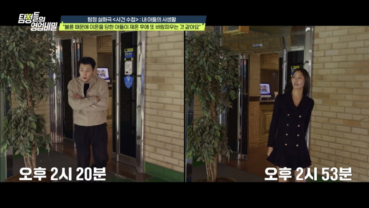 조사 결과, 의뢰인의 아들은 불륜녀와 시간차를 두고 모텔을 드나들고, 차량 안에서 밀회를 즐기는 등 치밀하게 외도를 이어가고 있었다.