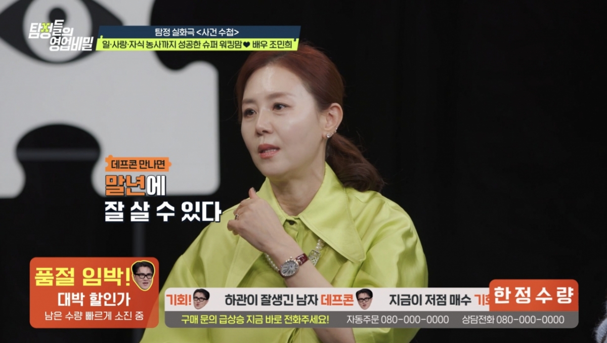 조민희는 "50세가 넘으면 반 점쟁이가 된다고 하는데, 제가 57세가 되니 사람을 보면 어느 정도 견적이 나온다"며 의미심장한 이야기를 꺼낸다. 그러면서 "데프콘을 만나면 말년에 잘 살 수 있다. 아직 결혼하지 않은 여성분들은 적극적으로 들이대시라"고 깜짝 발언을 던진다.