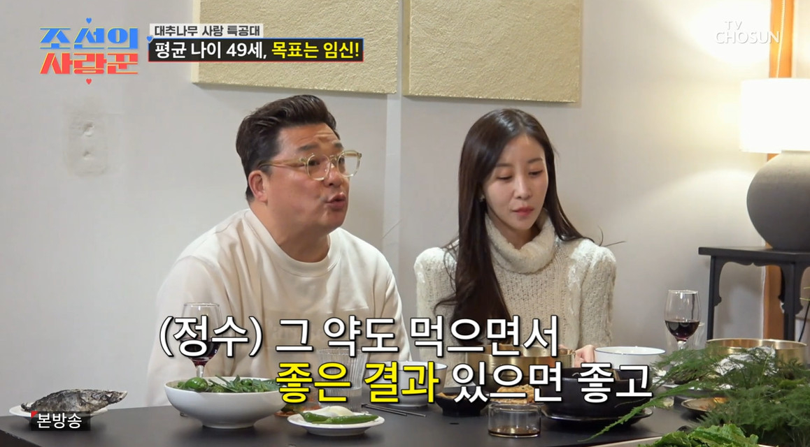 심현섭은 "남자들한테 시간마다 알람 맞춰서 약 먹으라고 하면 못할 거 같은데 여자들은 하더라. 아이를 갖고 싶어 하는 엄마는"라고 하자, 배기성 아내는 "나 개인을 위해선 못 할 거 같은데 우리를 위해선 무조건이다"라고 전했다. 심현섭은 "근데 노란 게 할머니들이 '요즘 아가씨들은 왜 결혼해도 아이를 안 낳냐'고 했다. 시험관 시술하러 병원 9번 했는데 젊은 부부가 정말 많더라"고 덧붙였다.