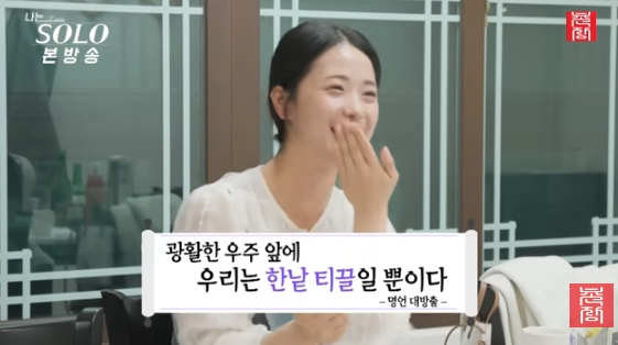 공개된 영상에서 영자는 영식과의 데이트 중 "저는 솔직히 말하면 세상에 관심이 없다. 광활한 우주 앞에 우리는 한낱 티끌 같은 존재다. 이렇게 한 인생 살다가 끝나는 작은 존재라서 '내가 이 세상에 관심을 가진다고 한들' 이런 느낌이다"라고 설명했다.