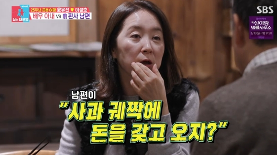 이날 윤유선은 전직 판사였던 남편의 직업과 관련한 정관계 로비 의혹에 대해 입을 열었다. 그는 "사람들이 오해가 많은 게 우리가 처음 결혼했을 때 '사과 궤짝에 돈을 갖고 오지?' 그러더라. 사과 궤짝에 돈은커녕 사과 한 알도 안 들어온다"라고 말해 웃음을 안겼다. 이성호 역시 "실제로 나는 그런 사람을 만나본 적이 없다"라고 선을 그었다.