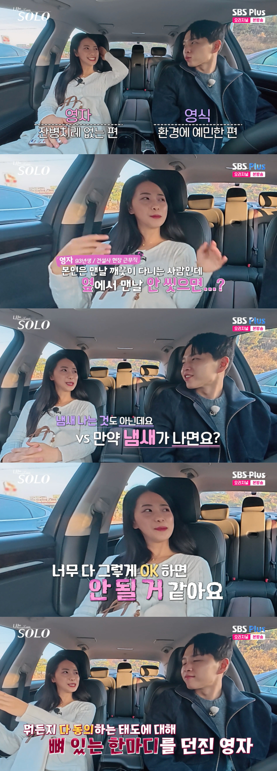 이날 영자는 영식에게 "관리 열심히 하지 않나. 저는 그런 편은 아니다. 만약 같이 다니는 사람이 안 씻는 사람이면 어떨 거 같냐"고 물었다.