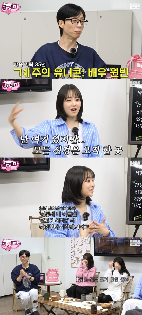 유재석은 "저에게 유니콘 같은 연예인이 한 분 계신다. 원빈 씨다"라고 했다. 그러자 박보영은 "저는 봤다"며 환하게 웃었다.