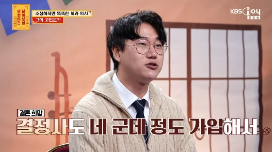 2일 방송된 KBS JOY 예능 프로그램 '무엇이든 물어보살'(이하 '물어보살')에는 공중보건의로 서울에서 근무하는 30대 남성이 출연했다.