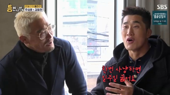 3일 방송된 SBS 예능 프로그램 '틈만 나면,'에는 추성훈, 김동현이 '틈 친구'로 출연해 은평구를 찾는 모습이 그려졌다.