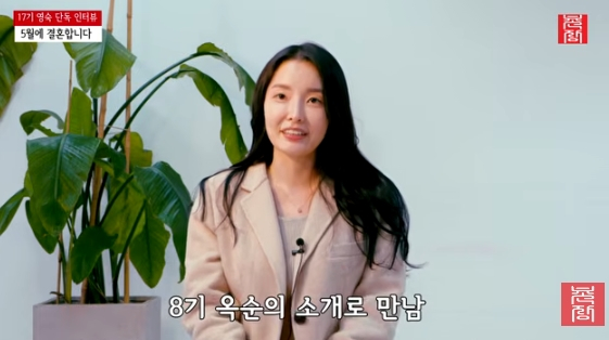 6일 공개된 유튜브 채널 '촌장엔터테인먼트TV'에는 '[솔로나라뉴스] 5월에 결혼합니다!! 17기 영숙 단독 인터뷰'라는 제목의 동영상이 게재됐다.