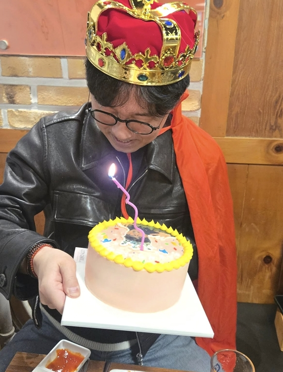 공개된 사진 속 장하준은 머리에 왕관을 쓰고 빨간 망토를 두른 채 촛불이 붙은 케이크를 들고 있다. 케이크 안에는 왕관을 쓰고 있는 장항준의 모습이 담겨있다.